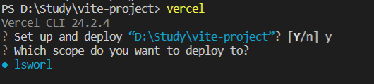 输入后会先让你确认是要部署当前项目,输入y或者按回车即可进行下一步。